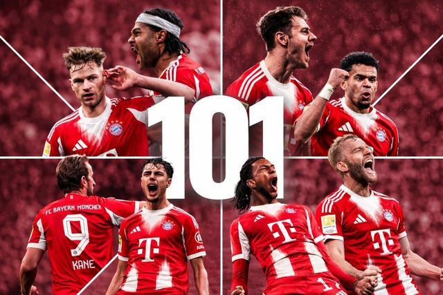 北京時間4月12日,德甲第29輪,拜仁慕尼黑客場對陣圣保利,上半場穆西亞拉破門為拜仁取得領先,至此,拜仁本賽季德甲已打入101球,追平了自己保持的單賽季德甲最多進球紀錄。